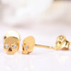 14 K Yellow Gold Skulls Diamond Earrings, Unique Statement Jewelry, Gothic Chic Accessories, Perfect Halloween Gift Edgy Gothic Earrings